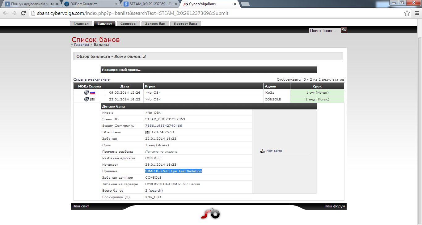 Цитата: No_OB по правилам, пункта 5 наказание идет по градации: "Предупреждение" --> "Кик" --> "Бан" он же, мне сразу влепил бан, без предупреждения. Наказание: предупреждение, кик, бан от 10 мин до 24 часов это на 1 раз по выбору админа, а за повторяющиеся случаи бан до 7 дней.) |