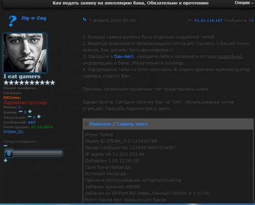 Ты бы для начала прочитал как правильно оформит заявка на разбан. А то никому не ясно кто ты,что ты |