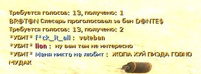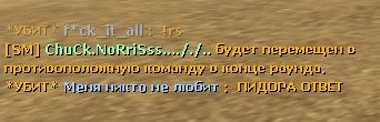 [ник]-Meня никтo нe любит [steam id]* STEAM_0:0:51403257 [причина жалобы]*оскорбление игроков и создание помех в игре [тики]* (минимум - момент подключения)- на данный момент играет( по укр- 21-50, [ссылка на demo]* http://dxport.ru/?do=static&page=demo&srv=dust2 , в данный момент демка еще пишется [краткое описание]** оскорбление игроков в различной форме, использование матерных слов и т.д., постоянно болтает о чем зря и тем самым мешает играть, и на сколько мне показалось, голос искажен при помощи программы(может и микро такой, я точно не уверен) |