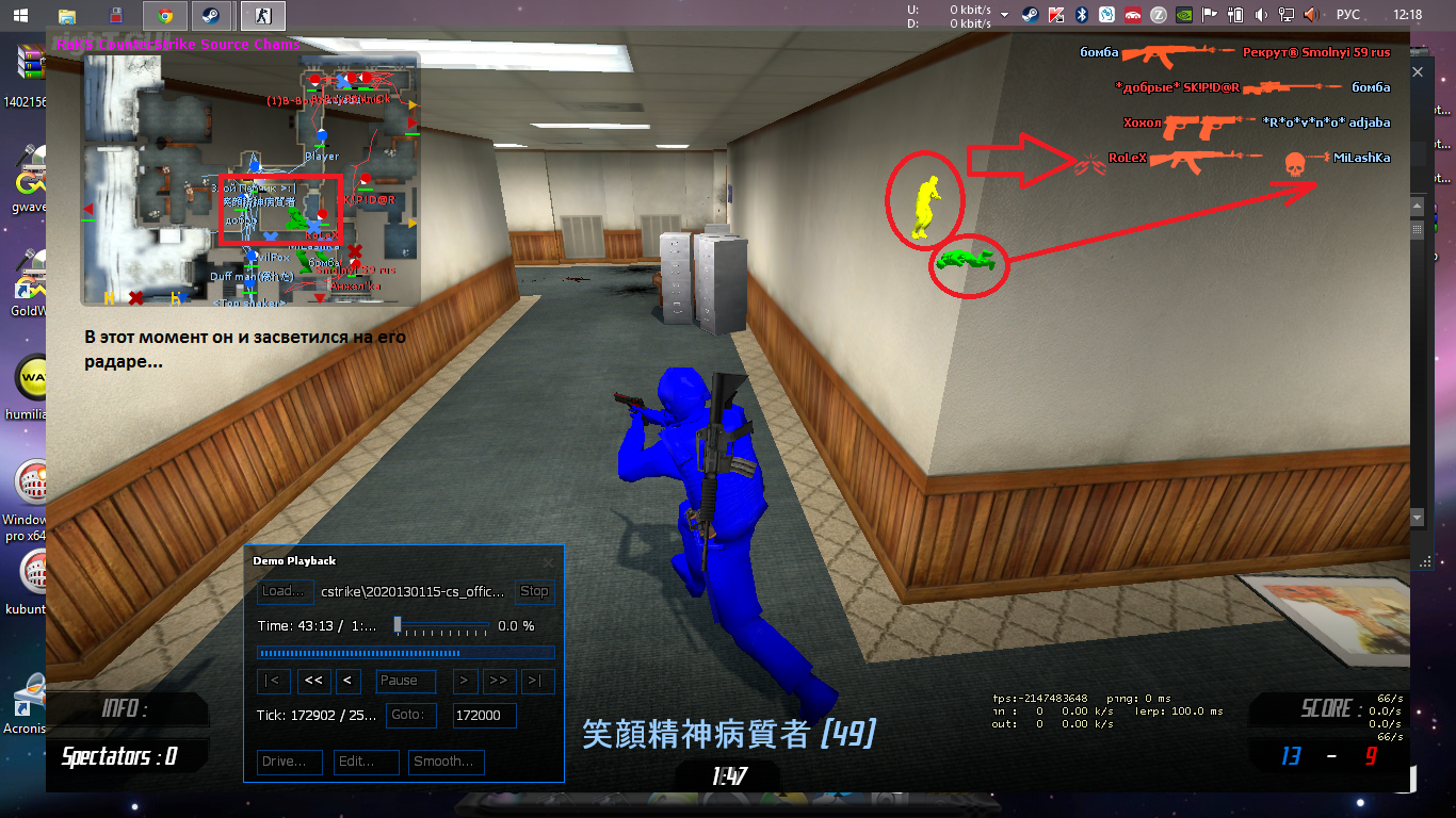 -=Mac=-, не знаю, мне последние тики показались подозрительными. Я уже понял что на офисе с наблюдениями нужно быть очень аккуратным ибо на этой карте манера и стиль игры несколько отличается отличается чем на других картах. И еще один момент, как вы узнаете что у данного объекта на радаре засветился или не засветился противник, у меня при просмотре демо на карте отображаются ВСЕ, и менты и теры в не зависимости видит их объект или нет. Сообщение отредактировал Anonymyx - 14 января 2015 14:13 |